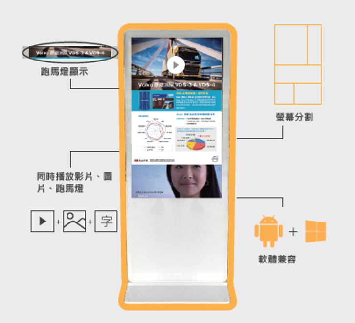 可以一邊播廣告,一邊播放產品圖片、菜單、或是選單等等。