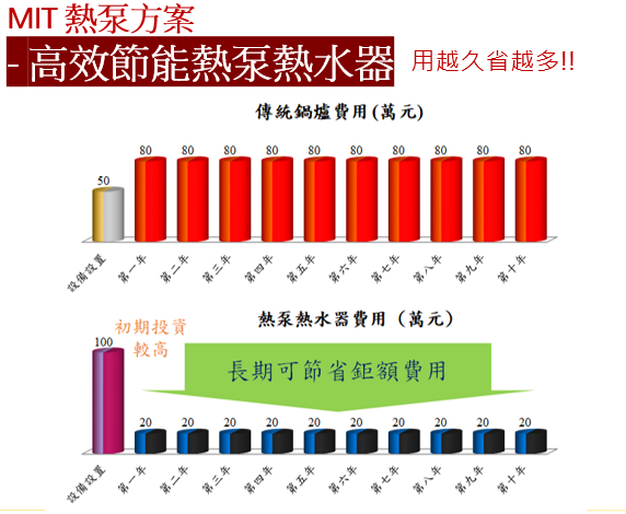 “熱泵” 是 旅宿, 校舍, 醫院, 泳池, 高爾夫球場, 健身房, 家庭住宅 … 熱水器的絕佳方案 !!